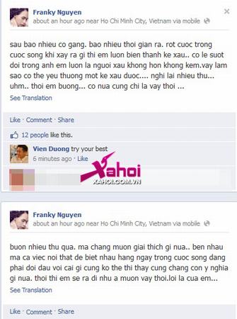 Theo thông tin mới nhận từ trang cá nhân của Franky cách đây ít phút, có vẻ như cô nàng đang có "xích mích" với người yêu nên tỏ ra vô cùng buồn bã qua một số dòng tâm sự.